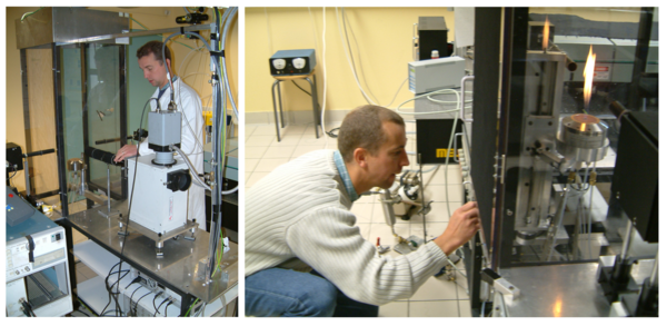 Très vite, il se passionne pour l’application des diagnostics laser au sein d’une flamme afin de percer les mécanismes physicochimiques qui conduisent à la formation des polluants et plus particulièrement des particules de suie. C’est peu dire que Eric avait un talent fou pour concevoir et construire des dispositifs expérimentaux que beaucoup lui enviaient. Pour mieux maitriser les processus de combustion de carburants liquides, dont les biocarburants, il met au point un dispositif de pulvérisation de gouttelettes au moyen d’un nébuliseur inséré dans un brûleur [1], aussi appelé « Therssen’s burner ». Il a par la suite inventé une méthode très subtile et élégante permettant de déterminer la variation spectrale du coefficient d’absorption des suies par la technique d’incandescence induite par laser [2] : la méthode dite Two-color Laser Induced Incandescence (LII), ou « Therssen’s method ». Ses qualités de chercheur se traduisent par une production scientifique de haut niveau. Eric était l’un des piliers de la communauté « LII », et était très apprécié par ses collègues que ce soit sur le plan local, national ou international.